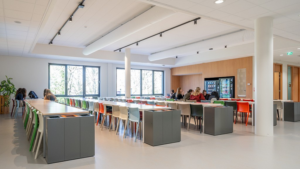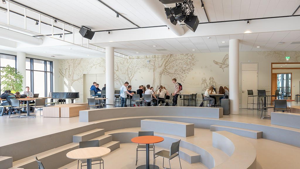 De school is energieneutraal en zit vol slimme, duurzame keuzes: 1.500 zonnepanelen, een warmtepomp en een goed ventilatiesysteem. Dat scheelt energie én kosten.